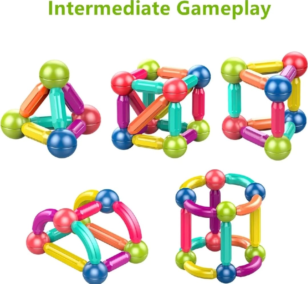 Dynamic Magnetic Connection: The Magnetic Building Blocks Set features a dynamic magnetic connection between sticks and balls, offering a unique and secure way for young hands to create. The magnetic force ensures stability in each construction, allowing children to experiment with different shapes and structures.